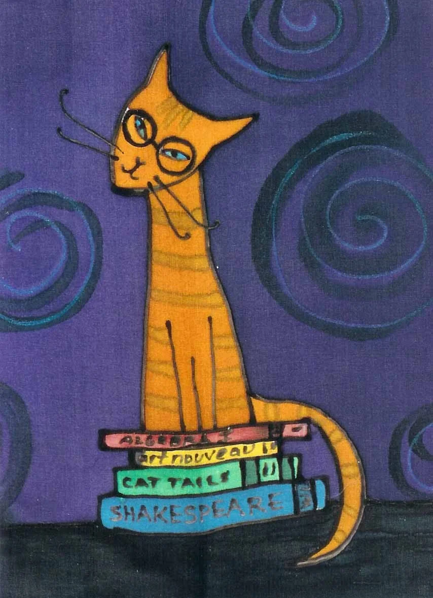 Original Café Cats Silk Painting with Mat 11 x 14