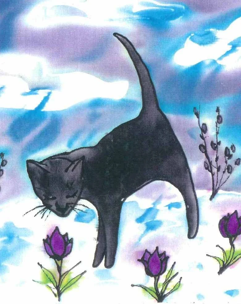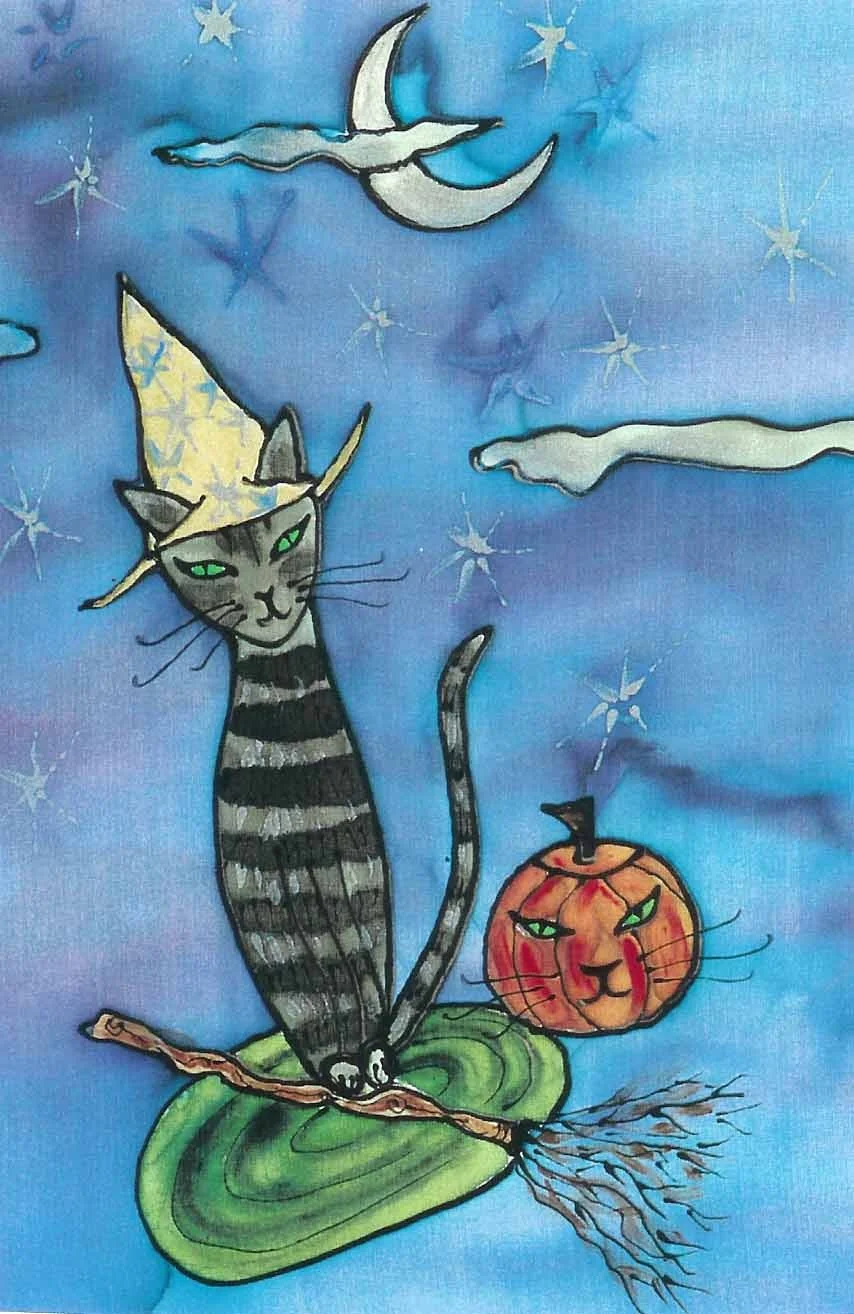 Original October Cat II Silk Painting (11x14)