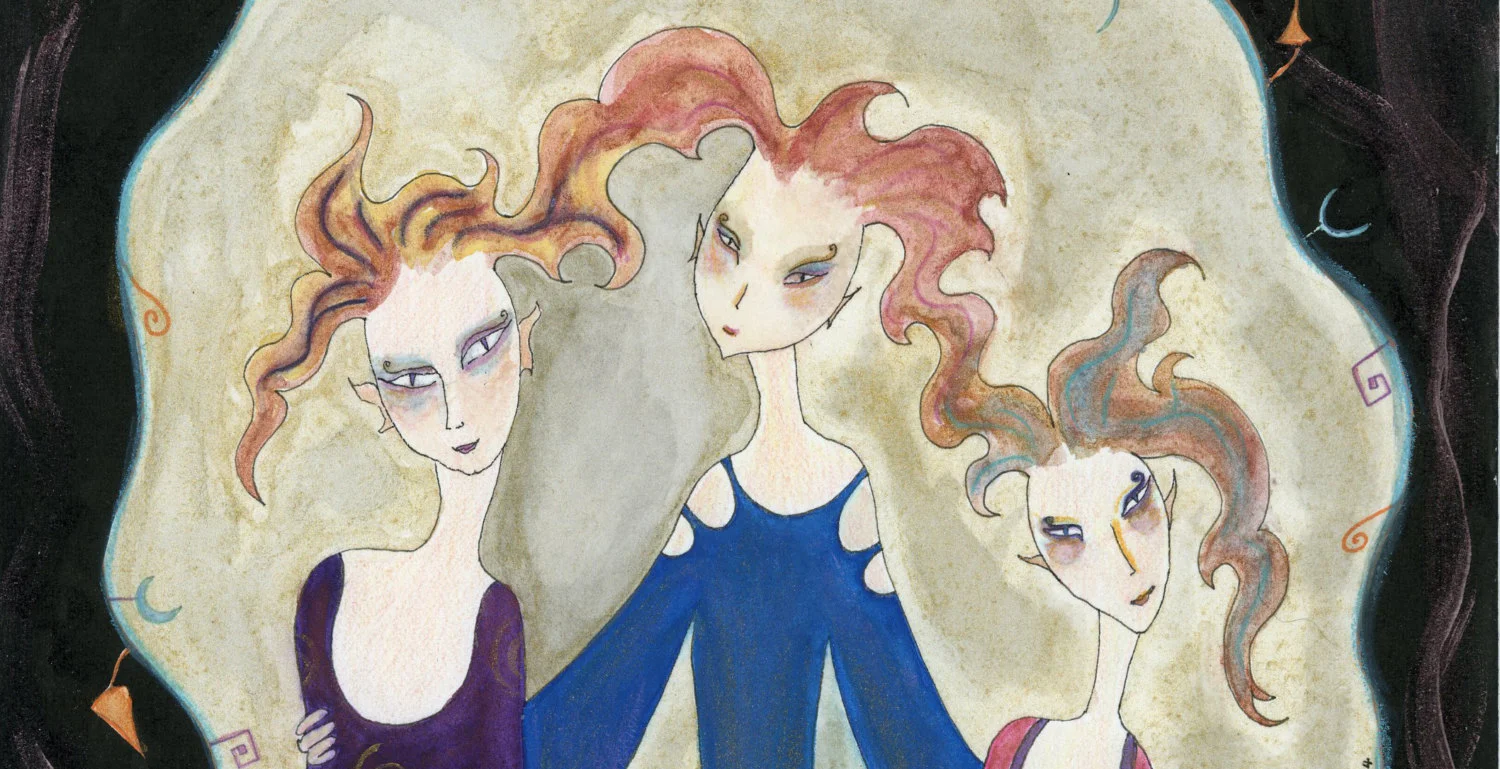 - 'Trois Soeurs' (Three Sisters) was painted with a variety of media including watercolors, gouache, collage, technical pen, colored pencil and inks on acid free 140 lb hot pressed watercolor paper (100% cotton)