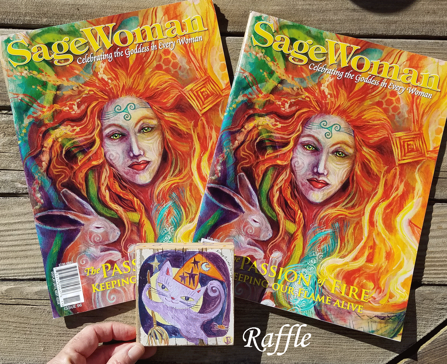 4. With each purchase you’ll be entered in a raffle for an original “Magik Cat” Halloween Kitty plus a copy of the latest Sage Woman Magazine (one of my illustrations is featured within and I’ve got 2 copies to give away).